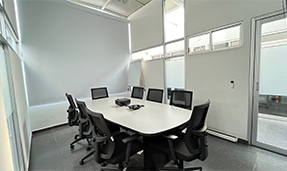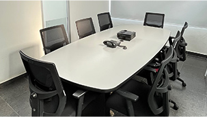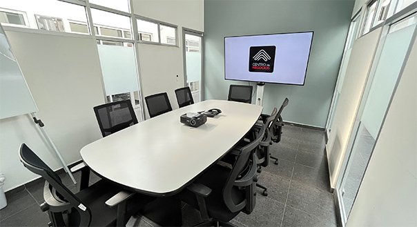 Espacio ideal para tus reuniones importantes. Cuenta con pantalla led de 90", proyector, telefonía de fibra óptica, espacio para ocho personas, ventilación y una excelente iluminación natural.