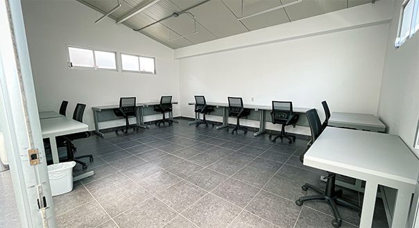 Espacio diseñado para trabajar de cinco hasta doce personas perfectamente espaciadas. Cuenta con una excelente iluminación natural y artificial, además de una adecuada ventilación. Totalmente equipada, lista para iniciar actividades.